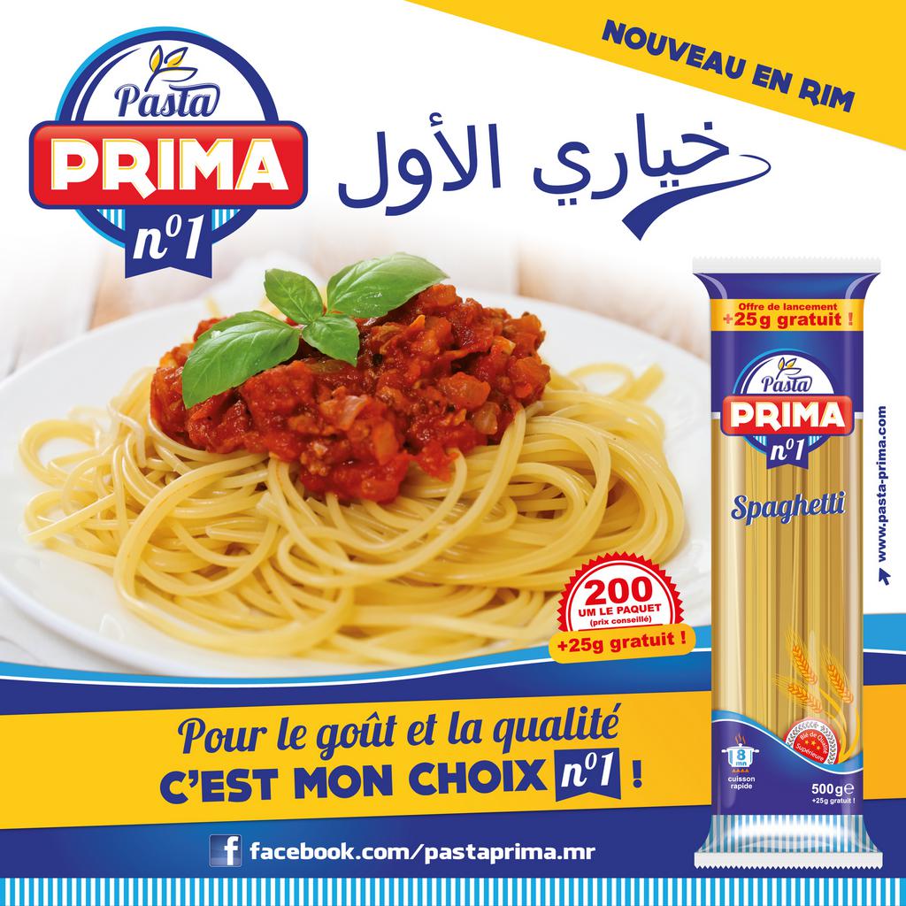 PASTA PRIMA, c'est la nouvelle marque de spaghetti fabriquée en Mauritanie depuis 2016 par les Grands Moulins de Mauritanie et correspond à la dernière innovation des Grands Moulins de Mauritanie.